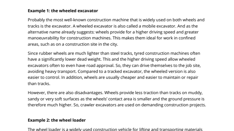 Excavator, loader or dump truck – here’s what to consider when using tyred construction machinery. Wheels enable higher speed and manoeuvrability at a lower price and easy maintenance. However, they reach their limits on difficult terrain.